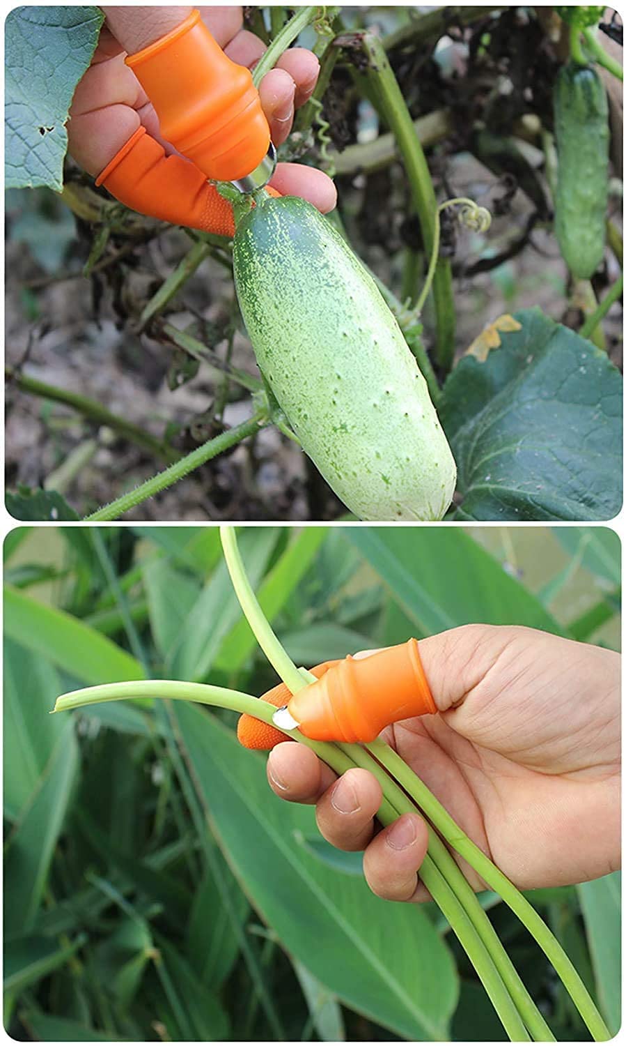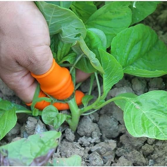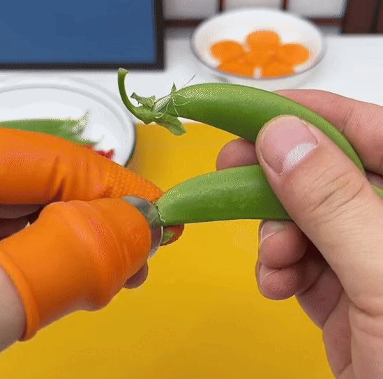 Slide the cutting tool onto your thumb for a secure and comfortable fit. It stays in place while you prep vegetables.